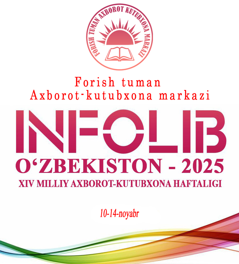 In accordance with the Order of the Ministry of Higher Education, Science and Innovations of the Republic of Uzbekistan dated December 27, 2024 No. 490 "On approval of plans for international and republican scientific and scientific-technical events in 2025", the XIV National Information and Library Week "INFOLIB-Uzbekistan 2025" is planned to be held on November 10-14 of this year. In this regard, the Forish District Information and Library Center will organize various events for information and library specialists and users during the week: