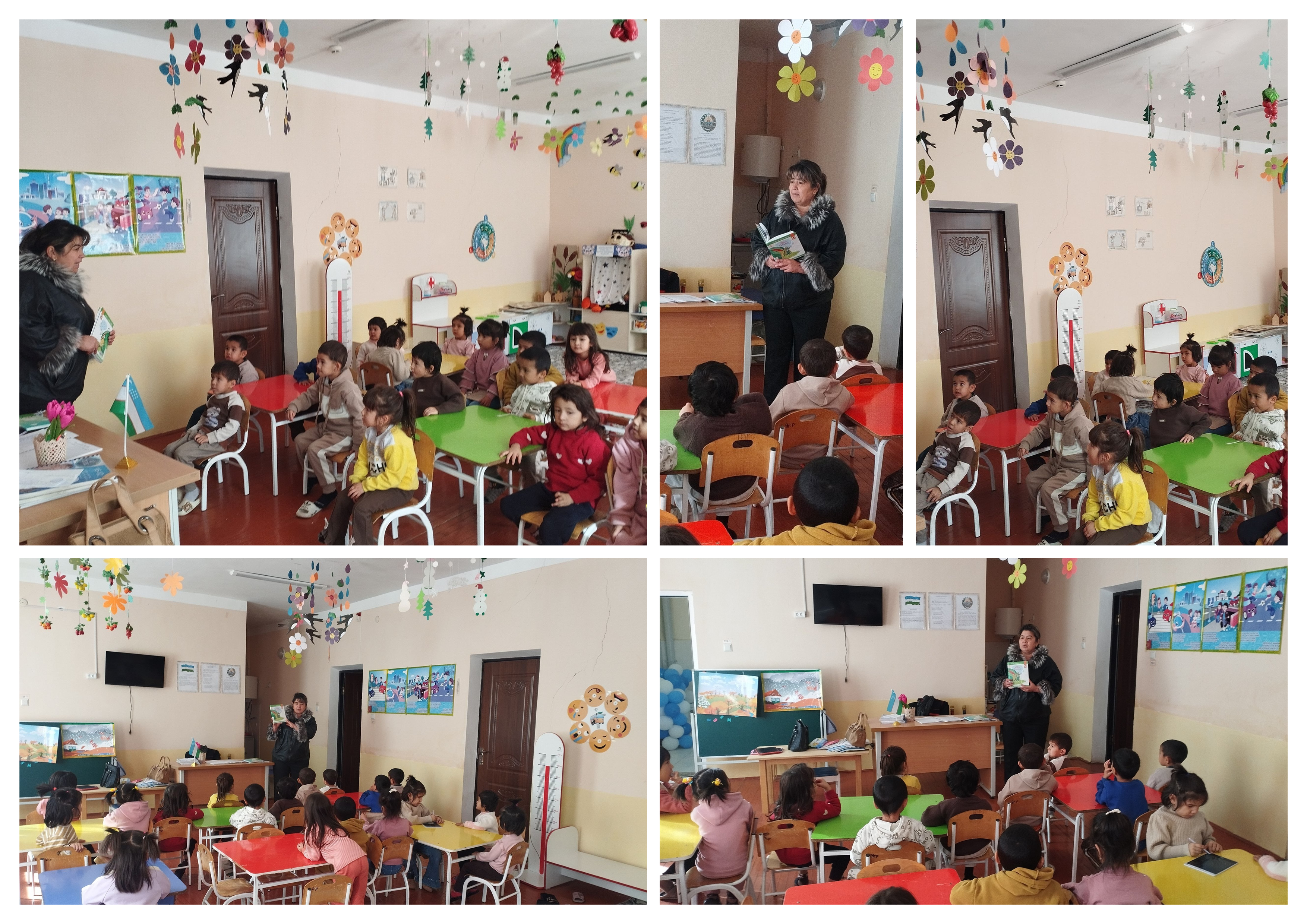 📖Suhbat davomida bolajonlarga turli ertaklardan o'qib berildi. Bolajonlar ertak o'qib berish to'g'ri so'zlikni o'rgatadi, tasavvurini kengaytiradi hamda mehnatsevarlikni o'rgatadi.