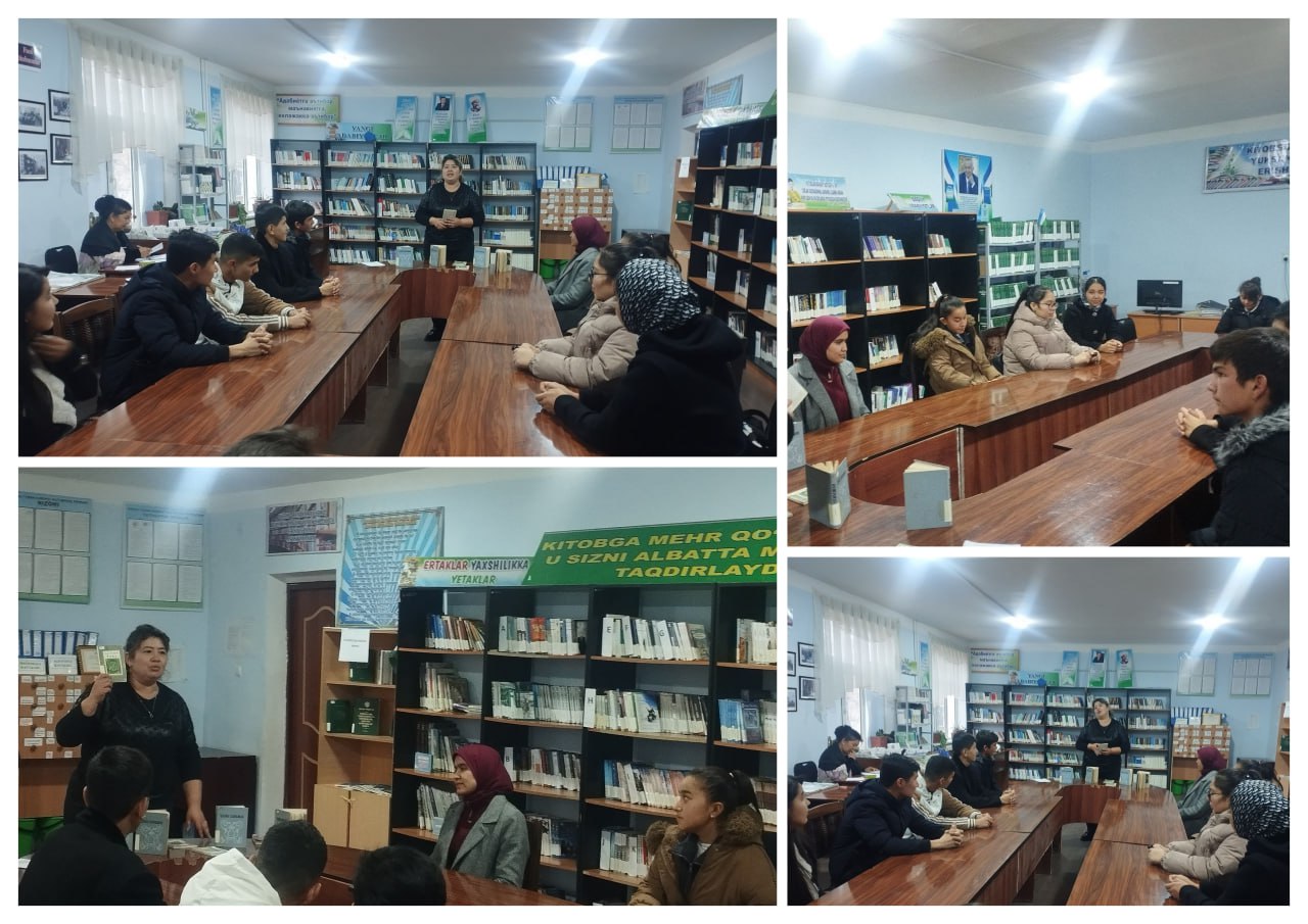 📌Davra suhbat davomida kutubxona xodimi tomonidan kitobxonlarga Hamid Olimjonning boy ijodiy merosi, o‘zbek adabiyotiga qo‘shgan ulkan hissasi, uning she’riyatidagi badiiy hamda dramaturgiya yo‘nalishidagi yutuqlari haqida batafsil ma’lumotlar berdi.
