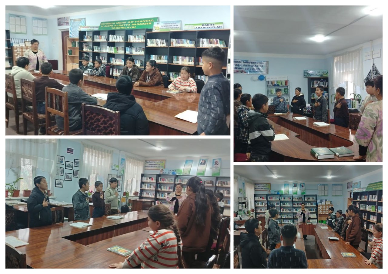 📌 Davra suhbati davomida ishtirokchilarga kutubxona xodimi tomonidan Davlat madhiyasining yaratilish tarixi, uning mualliflari — atoqli shoir Abdulla Oripov va bastakor Mutal Burhonov haqida qiziqarli ma’lumotlar yetkazildi. O‘quvchilar madhiyaning mazmun-mohiyati, unda aks etgan vatanparvarlik va yurtga muhabbat tuyg‘ularini chuqurroq anglab olishdi.