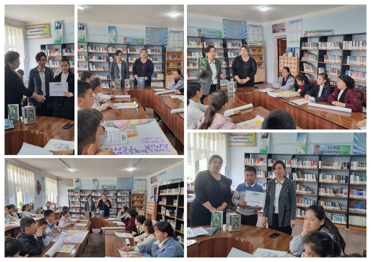 📚 8-aprel kuni Forish tuman axborot-kutubxona markazi 1-umumta'lim maktabi o‘qituvchilari hamkorligida faol kitobxonlar ishtirokida buyuk sarkarda, davlat arbobi va Temuriylar saltanati asoschisi Amir Temur tavalludining 690-yilligi munosabati bilan “Amir Temur merosi — avlodlar uchun ibrat maktabi” nomli davra suhbati tashkil etildi.