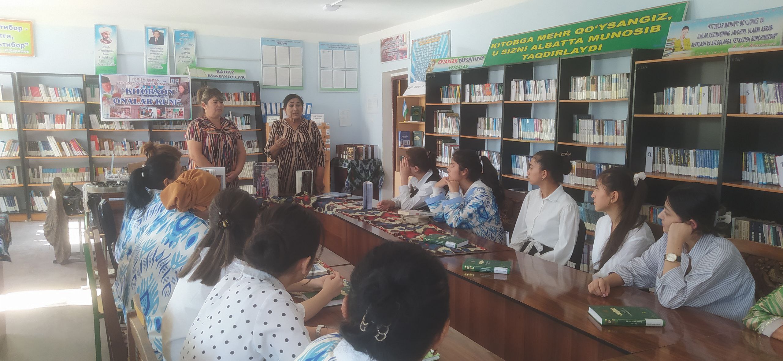 ✅✅Har oyning 17-sanasida an’anaviy tarzda o‘tkazib kelinayotgan “Kitobxon onalar kuni” munosabati bilan, 17-sentabr kuni Forish tuman axborot-kutubxona markazi “Xon-atlas” haftaligi doirasida mahallaning faol ayollari o'rtasida "Kitobxon ona — ma’rifat chirog‘i" nomli davra suhbati tashkil etildi. 📌Tadbir davomida kitobxon onalarning mutolaaga bo‘lgan qiziqishi, kitob o‘qish orqali oilada ma’naviy muhitni mustahkamlash masalalari muhokama qilindi. Shuningdek, kitobxonlik madaniyatini yoshlar orasida keng yoyishda onalarning o‘rni va mas’uliyati alohida ta’kidlab o‘tildi. 📚 Kitob — inson tafakkurining qanoti, ona qo‘lida esa tarbiya chirog‘idir. Har bir ona kitob o‘qisa, uning farzandi ham ilmga, ma’rifatga oshno bo‘ladi.