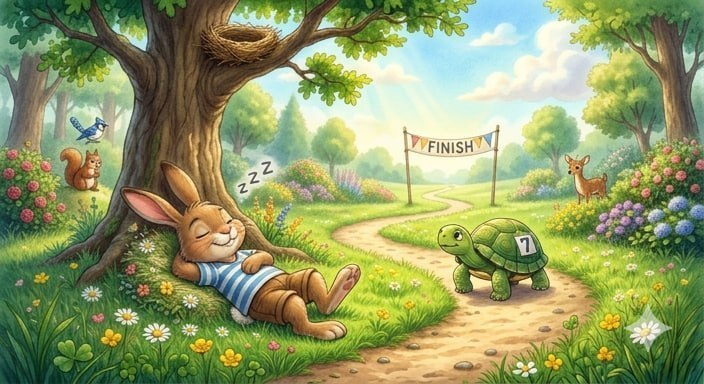 🐢 Shoshqaloq quyon va sabrli toshbaqa