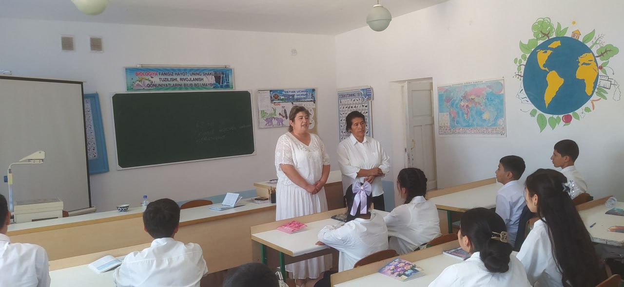 1-umumta'lim maktabining faol kitobxonlari o'rtasida "Kitob ma'naviy boyligimiz" mavzusida davra suhbati tashkil qilindi.