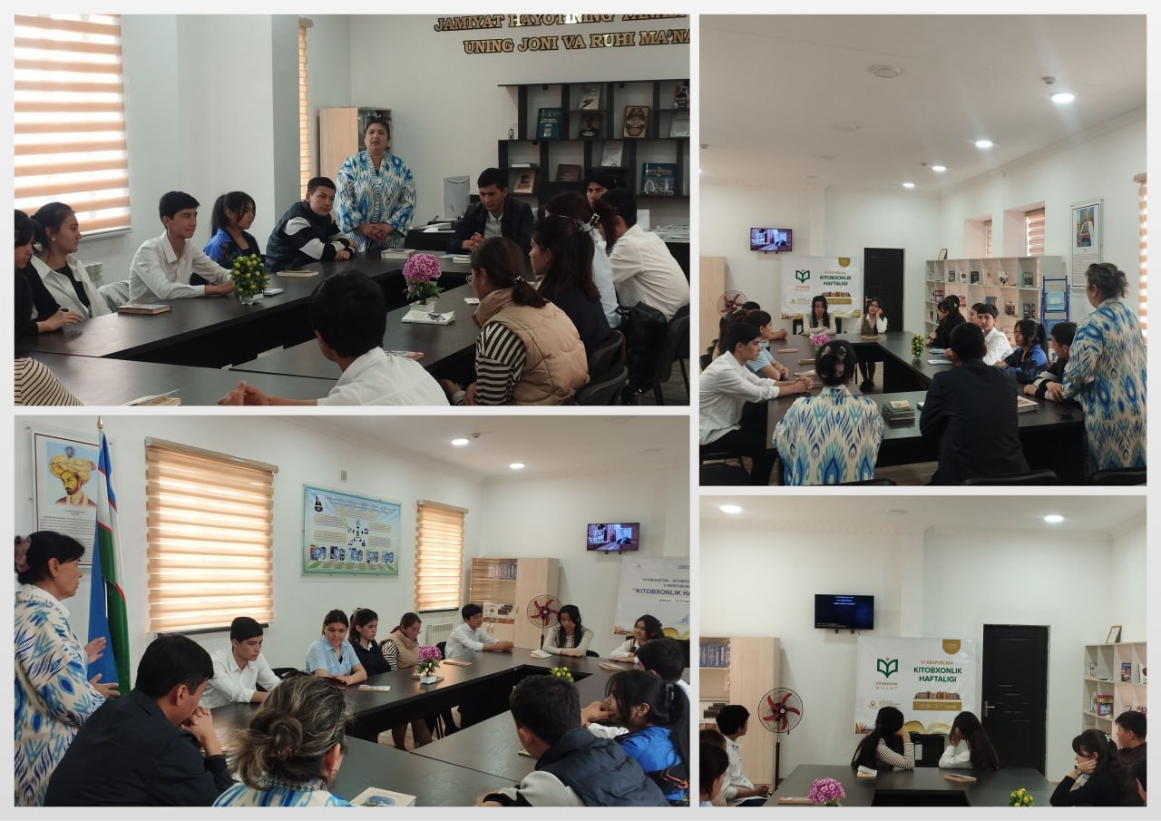 📚 “Kitobsevar millat” shiori ostida o‘tkazilayotgan VI Respublika “Kitobxonlik haftaligi” doirasida 17-aprel kuni Forish tuman axborot-kutubxona markazida navbatdagi ma’naviy-ma’rifiy tadbir yuqori saviyada tashkil etildi. Ushbu tadbir Forish tuman axborot-kutubxona markazi, Ma’naviyat va ma’rifat markazi Forish tuman bo‘linmasi hamda 1-umumta’lim maktabi o‘qituvchilari hamkorligida o‘tkazildi.