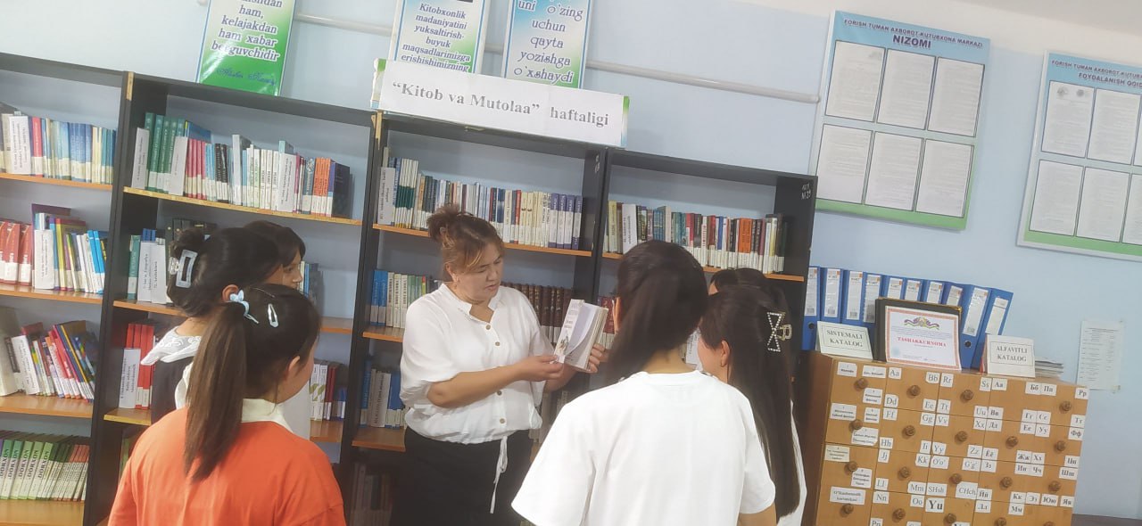 8-sentabr kuni Forish tuman Axborot-kutubxona markaziga Forish tuman 1-umumta`lim maktab o`quvchilari tashrif buyurdilar va kutubxona bo`ylab sayohat uyushtirdilar. Axborot-bibliografiya xizmati tomonidan yosh kitobxonlarni kitob mutolaasiga qiziqtirish maqsadida kutubxona kitob fondi, yangi kelib tushgan adabiyotlar haqida malumot berildi.