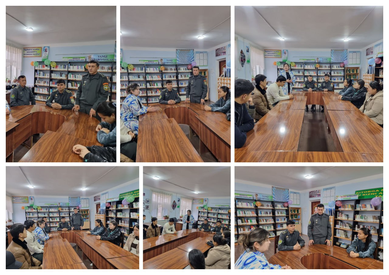 📚 Forish tuman tog‘ poligoni xodimlari kichik serjant Xasanov Abbos Faxriddin o‘g‘li, Kichik serjant G‘oyibov Begzod To‘rayevich, Kapitan Shoyoqubov Abdulaziz Xanjarali o‘g‘li hamda Forish tuman axborot-kutubxona markazi Abonomentlar va foydalanuvchilarga xizmat ko‘rsatish xizmati bilan hamkorlikda yoshlar o‘rtasida “Kelajakdagi kasbim” mavzusida uchrashuv tashkil qilindi.
